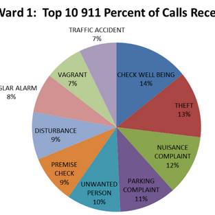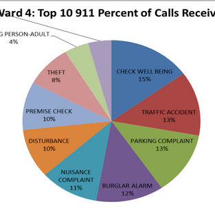 Take a look at what kinds of calls the police department receives, broken down by ward, here.